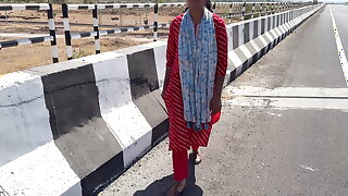 कोमल हाईवे के ब्रिज पर खड़ी ड्राइवर से छूत वने के लिए