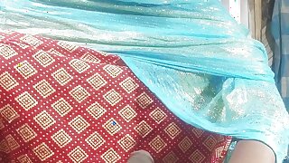 नीली साड़ी में बिस्तर पर देसी भारतीय भाभी की चुदाई