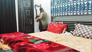 Desi stepmom had creampie sex on Karvachauth when stepson dick boner while watching stepmom change clothes in Hindi audio.