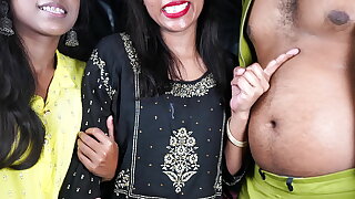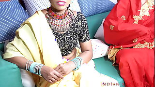 Desi threesome Indian wife shared while husband watching and masturbating in clear Hindi audio